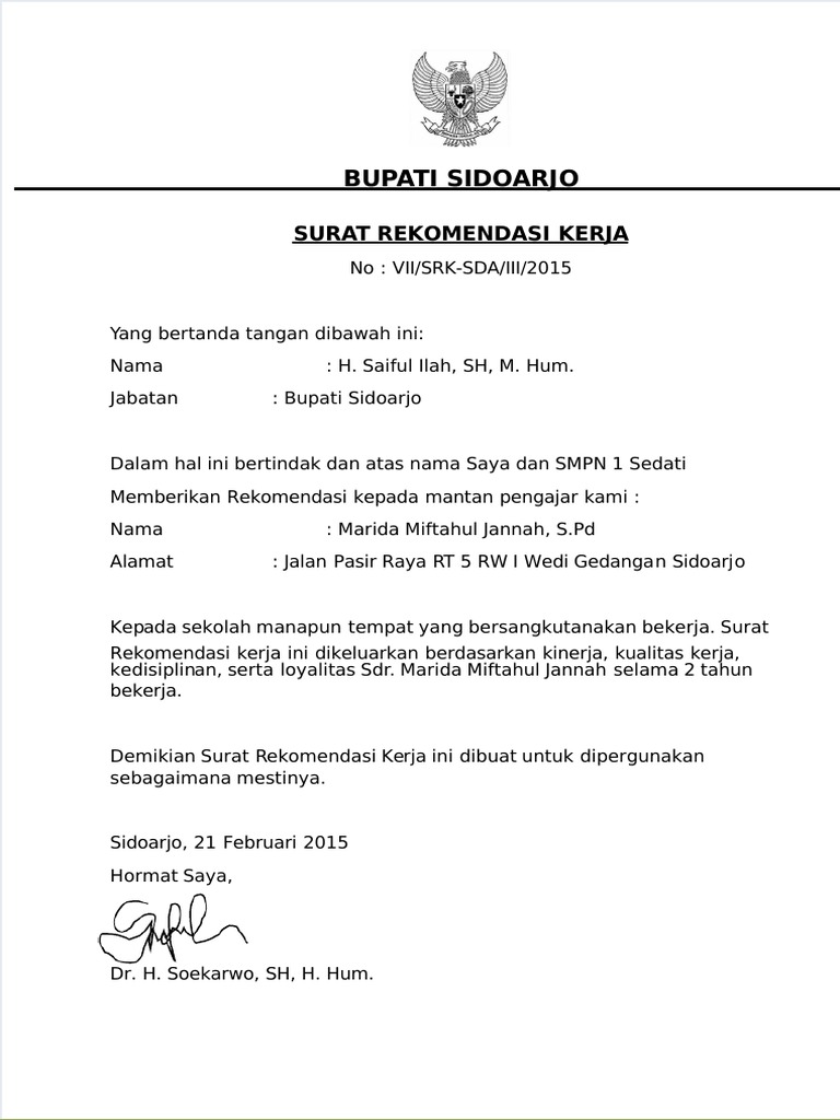 Dokumen Tips Contoh Surat Rekomendasi Kerja Bupati Pdf